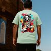 Celebrate the spirit of reggae with the Legendary Vibes Tee. The back of this mint green shirt features a dynamic, full-color illustration of a reggae icon mid-performance, set against a splash of bold, expressive paint strokes in red, yellow, blue, and orange. This artwork radiates musical energy and cultural pride, making it more than just a t-shirt—it’s a tribute to a movement. Perfect for music lovers, free spirits, and fans of timeless reggae sound. Made with soft, breathable fabric for comfort that lasts all day.